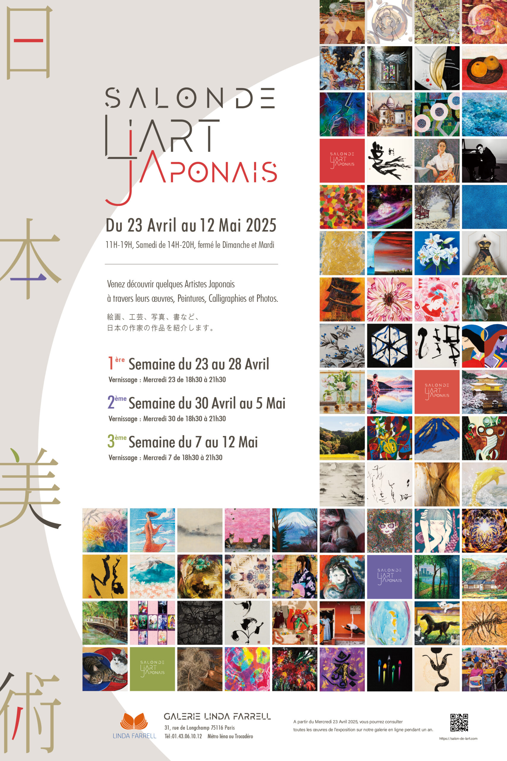 2024年パリオリンピックで注目を集めたパリ16区にあるリンダ・ファレル・ギャルリーでは、恒例の「第9回 サロン・ド・アール・ジャポネ2024」が9月25日から10月14日まで開催されました。各会期初日のヴェルニサージュは多くの来場者で賑わい、日本からの出展者による作品解説も好評でした。現代日本の美術を世界に発信するこの展覧会は、地元でも期待され、注目がさらに高まっています。